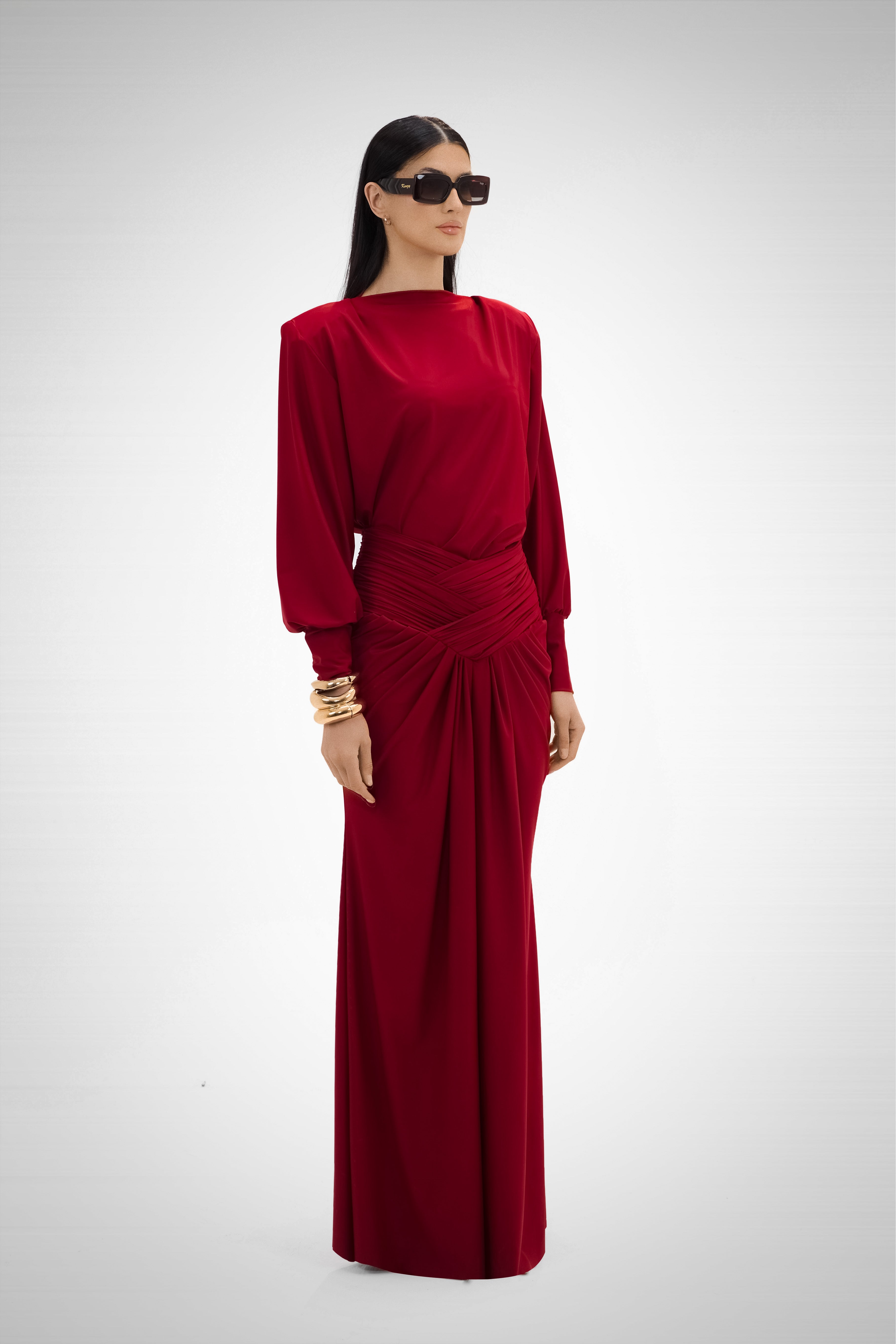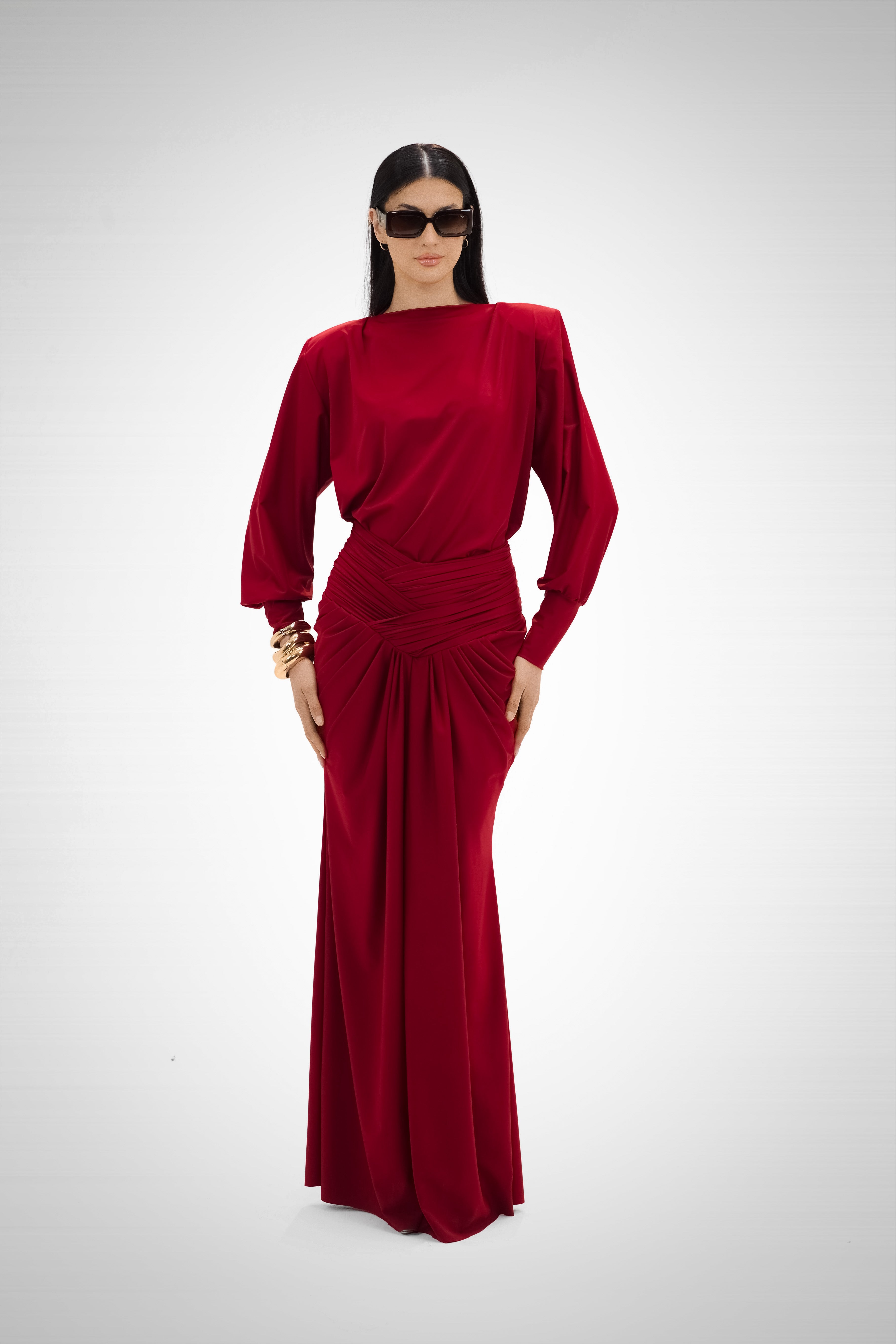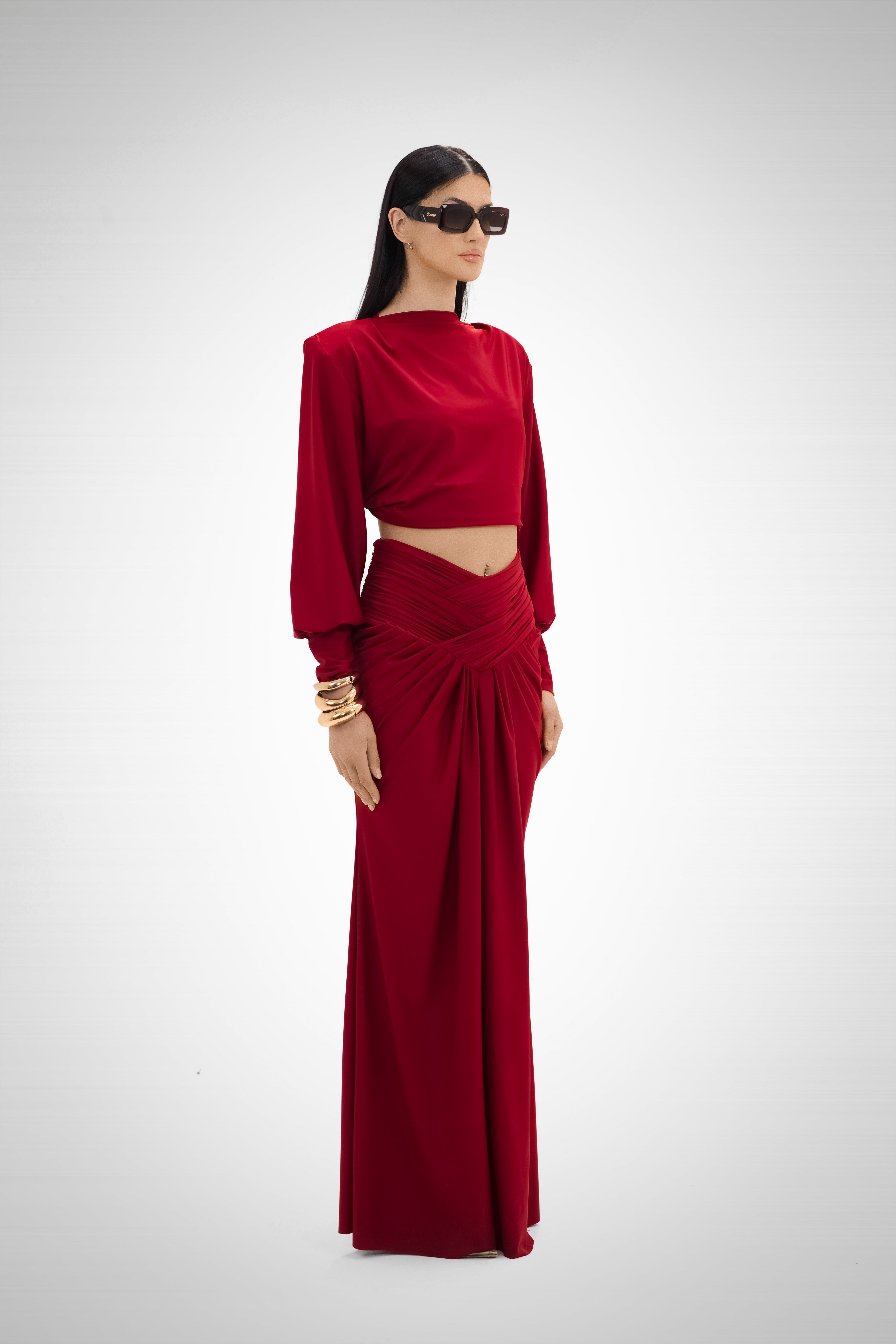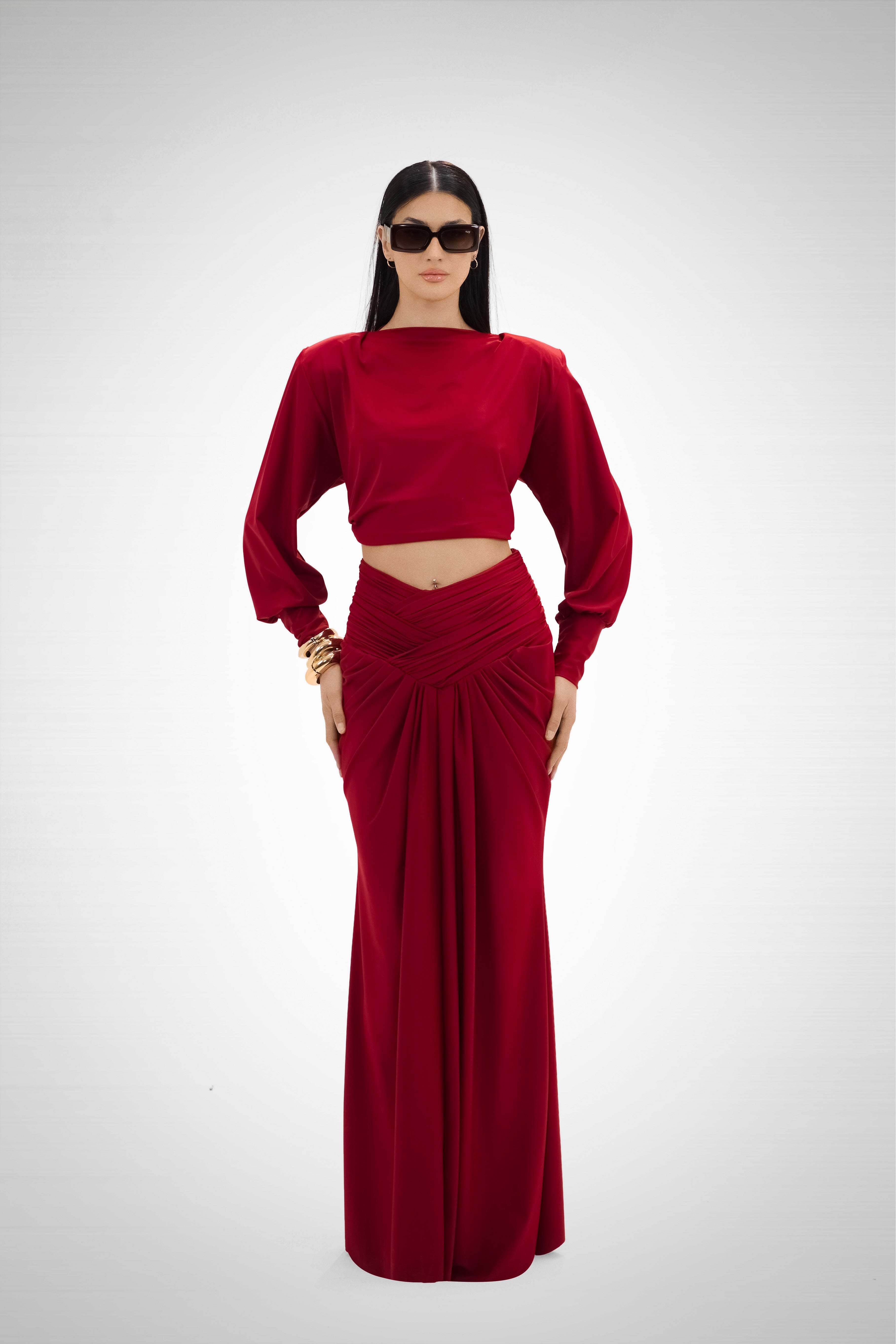 A sculptural masterpiece, The Draped Muse features a 2 pieces set with elegant folds and asymmetrical draping, embodying effortless grace and refined modernity.