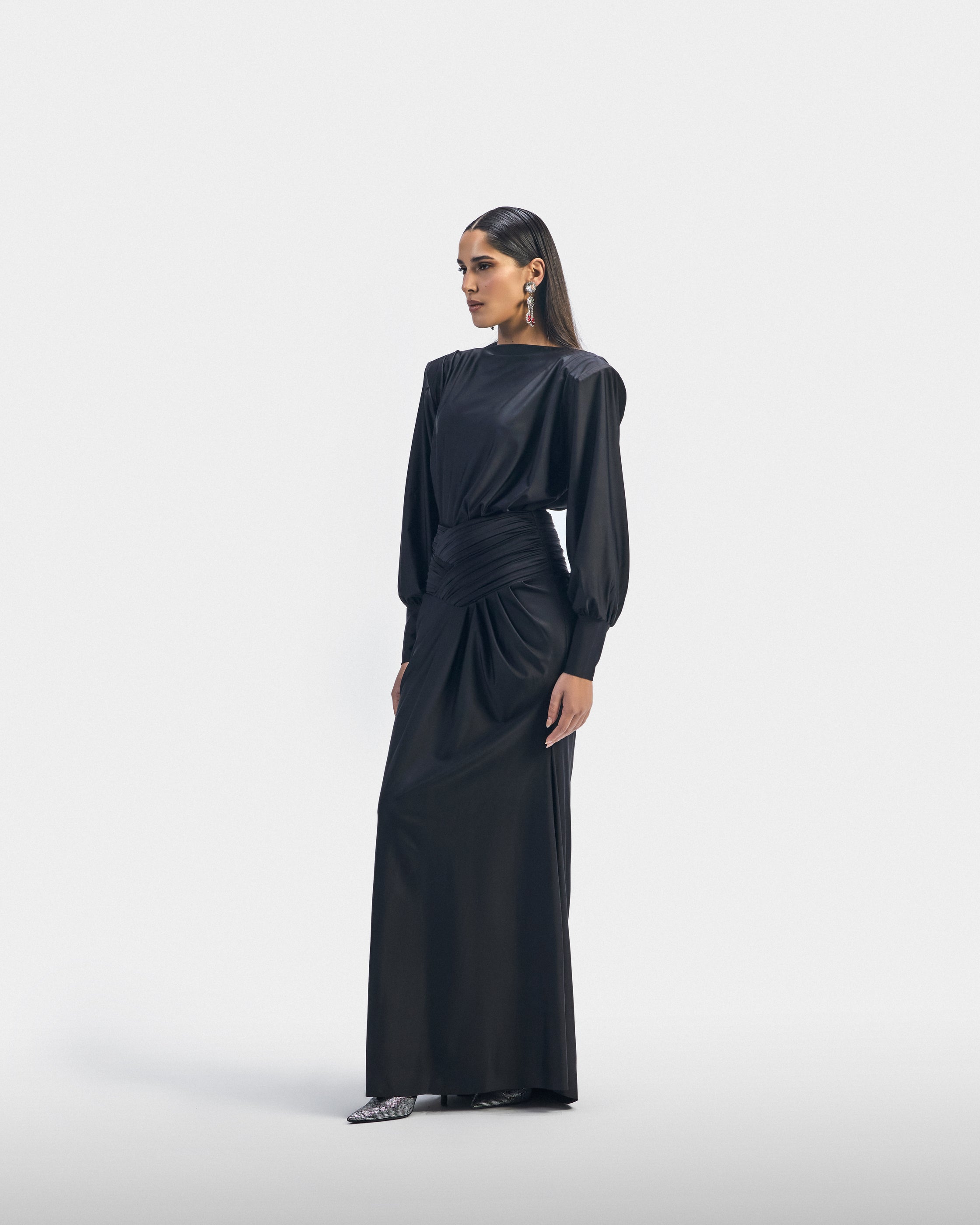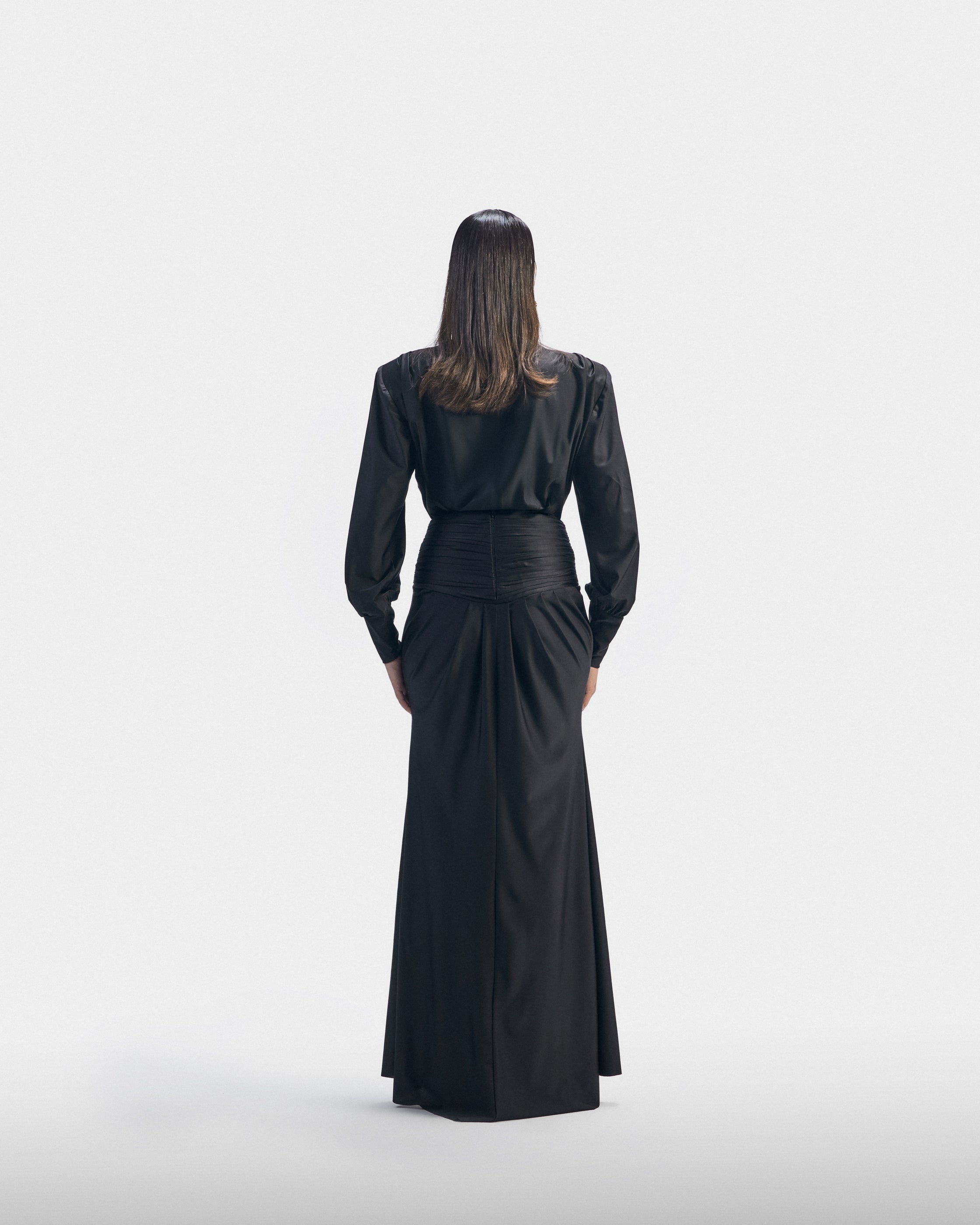 A sculptural masterpiece, The Draped Muse features a 2 pieces set with elegant folds and asymmetrical draping, embodying effortless grace and refined modernity.